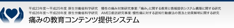 厚生労働科学研究「痛みに関する教育と情報提供システムの構築に関する研究」及びAMED研究「慢性痛に対する認知行動療法の普及と効果解明に関する研究」の取り組みで、「痛みの教育コンテンツ」というPowerPointスライドを作成しております。